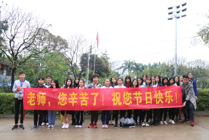 3月8日,省电子商务技师学院团委组织学生为女教师们送上玫瑰花以表感谢。在校道上,学生拉着印有“老师,您辛苦了”字样的横幅迎接一早到校的教师,并为每位女教师送上玫瑰花,现场不时传出欢声笑语,节日气氛浓厚。