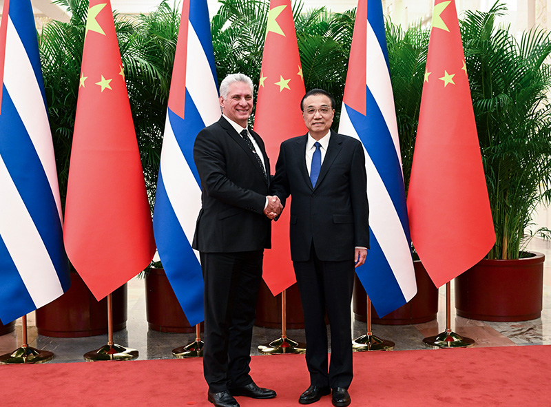 11月25日,国务院总理李克强在北京人民大会堂会见来华访问的古共中央第一书记、古巴国家主席迪亚斯-卡内尔。新华社记者 饶爱民 摄