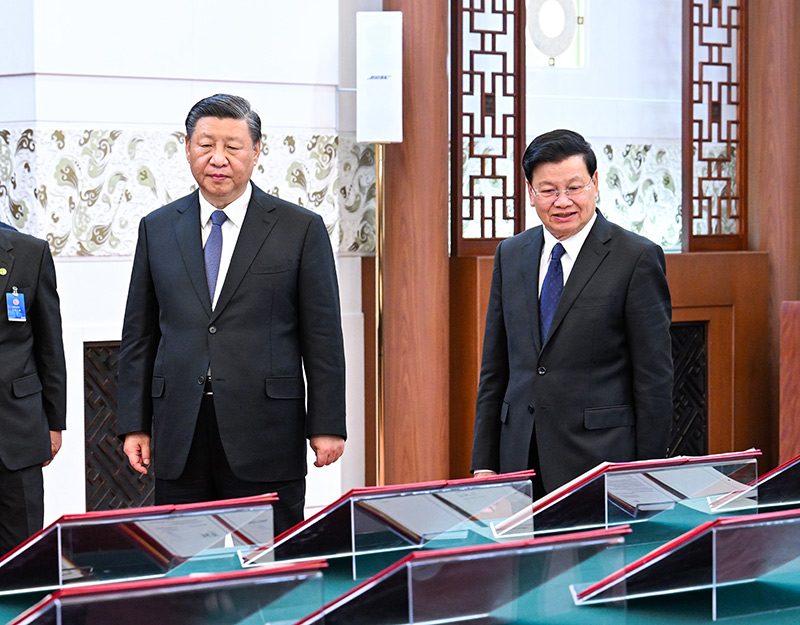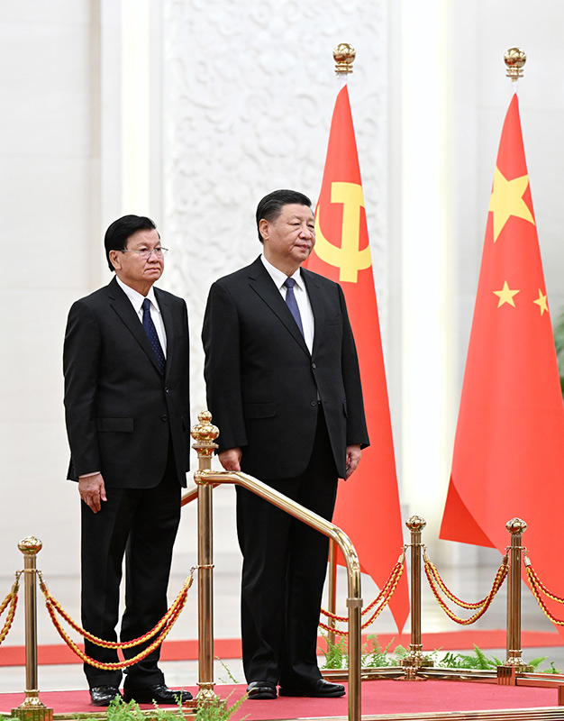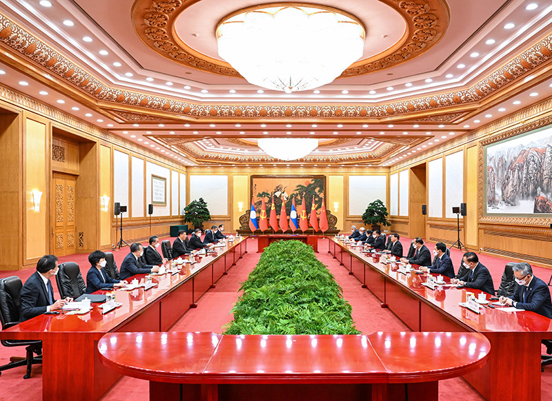 11月30日,中共中央总书记、国家主席习近平在北京人民大会堂同老挝人民革命党中央总书记、国家主席通伦举行会谈。新华社记者 张领 摄