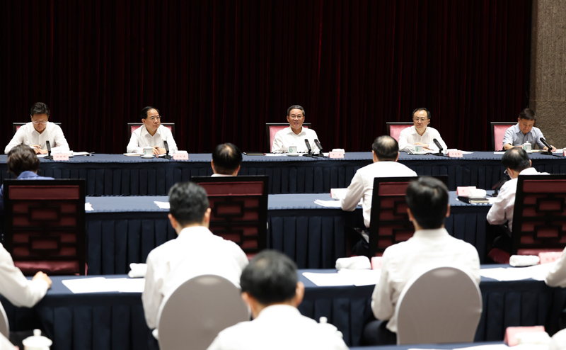 7月26日至27日,中共中央政治局常委、国务院总理李强在上海市调研自贸试验区建设。这是27日,李强主持召开座谈会。新华社记者 黄敬文 摄