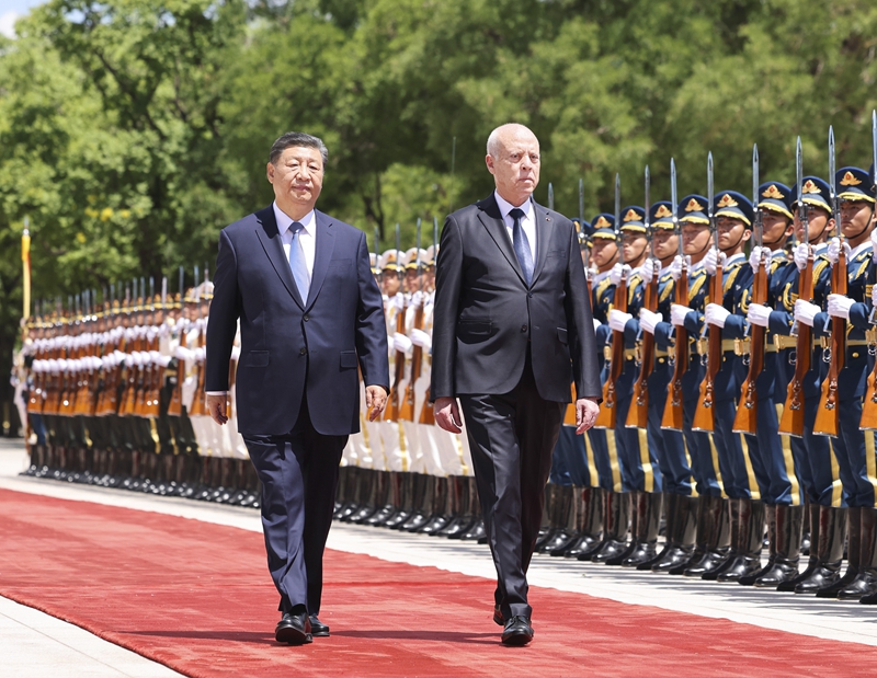5月31日上午,国家主席习近平在北京人民大会堂同来华国事访问并出席中国-阿拉伯国家合作论坛第十届部长级会议开幕式的突尼斯总统赛义德举行会谈。这是会谈前,习近平在人民大会堂东门外广场为赛义德举行欢迎仪式。新华社记者 庞兴雷 摄