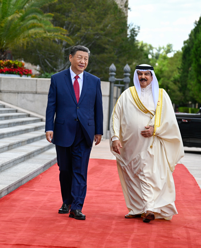 哈马德表示,中国是伟大的国家,为巴林国家建设提供了大量支持,巴方深表感谢。巴方希望以建立全面战略伙伴关系为契机,对接两国发展战略,密切各领域务实合作,助力巴林实现多元化发展。巴方高度赞赏并完全赞同中方秉持的高尚价值理念和理性智慧的政策主张。中国发展好了,其他发展中国家才能发展好,世界多极化进程才能持续推进。巴方坚信,中国必将实现中华民族伟大复兴,并为世界和平繁荣作出更大贡献。巴方恪守一个中国原则,支持中国实现和平统一。愿同中方密切多边协作,更好保障各国人民享有平等的生存权和发展权。巴方愿同中方一道,推动尽早达成海合会-中国自由贸易协定,发扬阿中友好精神,携手构建面向新时代的阿中命运共同体。