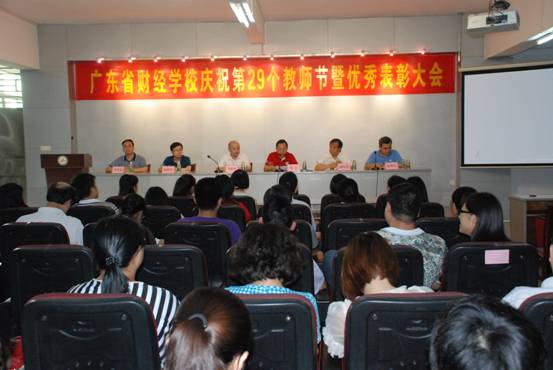 2013年9月10日,省社党组成员、理事会副主任周根旺在省社人事教育处副处长高晓滨的陪同下,出席省财经学校隆重举行的庆祝第29个教师节暨优秀教师优秀班主任表彰大会,慰问省财经学校全体教职员工并作重要讲话。省财经学校校长邓宁、副校长饶权进、彭仲文、李明龙出席了庆祝表彰大会。饶权进副校长宣读了学校《关于表彰2012/2013学年优秀教师和优秀班主任的决定》。会议由彭仲文副校长主持。