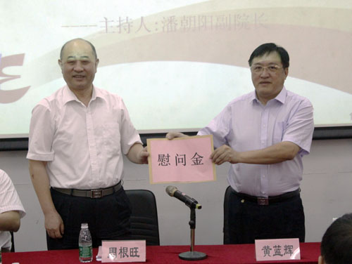 党组成员、理事会副主任周根旺在人事教育处处长钟劲东陪同下,参加我院庆祝教师节暨表彰大会。周根旺副主任代表省社向学校赠送节日慰问金。会议对2012-2013年度获得各级奖项的优秀个人以及学校评选出的优秀教师和优秀班主任进行表彰并颁奖。潘朝阳副校长主持大会。