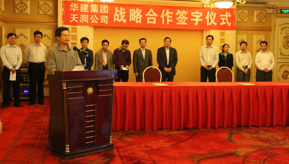 何启环副主任在致辞中强调,天润公司与华建企业集团公司签订战略合作框架协议,有利于双方在激烈的市场竞争中强强联合,优势互补,共同探索在农副产品仓储基地建设、工程建筑、物业粮油合作、物流配送及粮油电商服务平台等领域的全方位、一体化合作,实现互利共赢。他希望双方以协议为基础,精诚合作、携手共进。