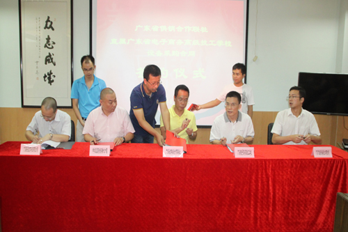 8月27日, 直属广东省电子商务高级技工学校德促贷款设备采购合同签约仪式在我院举行。省社党组成员、理事会副主任陈容秋和我院校长、党委书记潘朝阳作为业主代表与中标公司代表和招标代理公司代表共同签署了设备采购合同。出席此次签约仪式的还有省社科工处、人教处、财务处、监审室代表,学校领导班子成员及教职工代表和中标企业代表。签约仪式由朱冰副校长主持。
