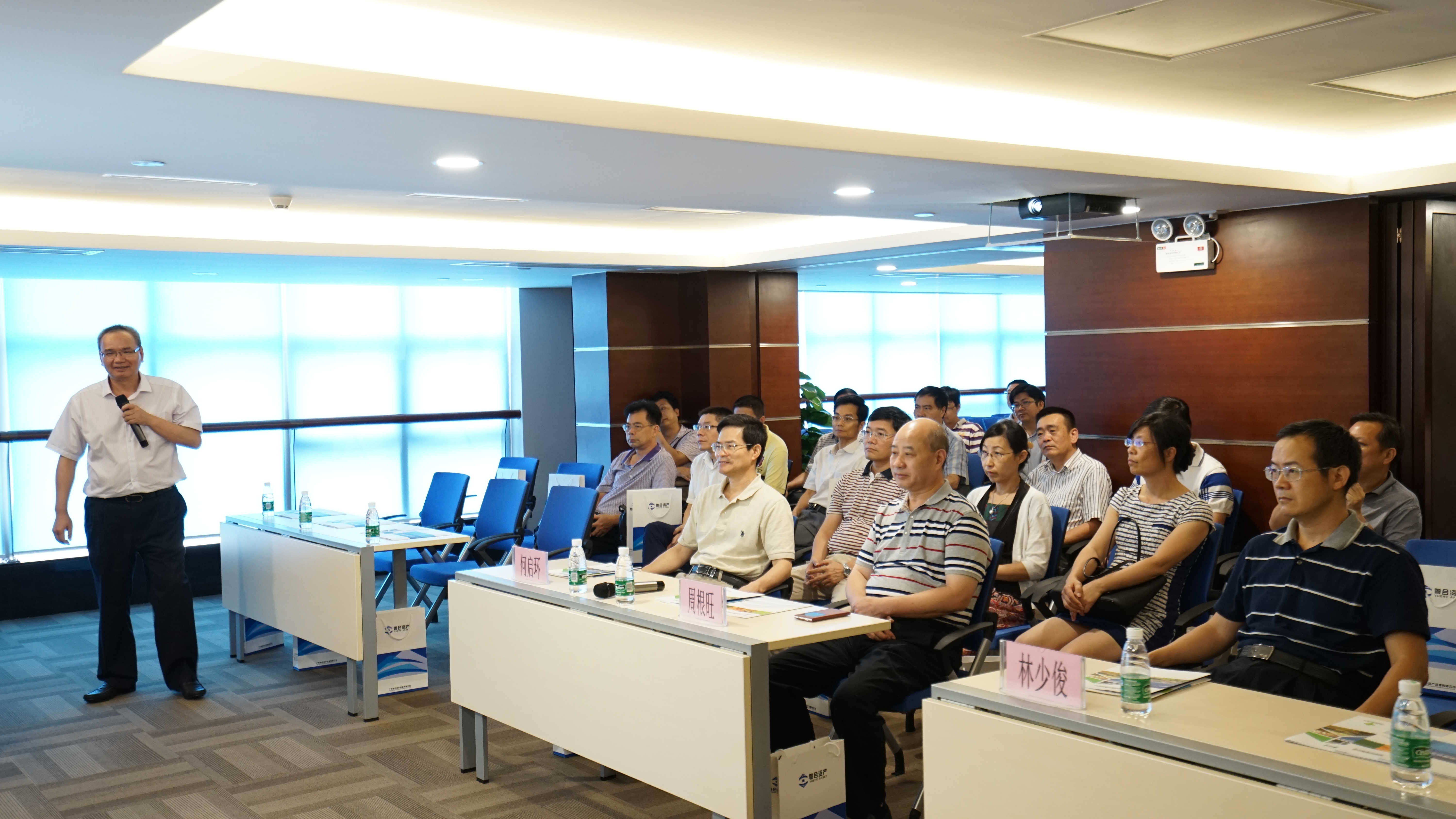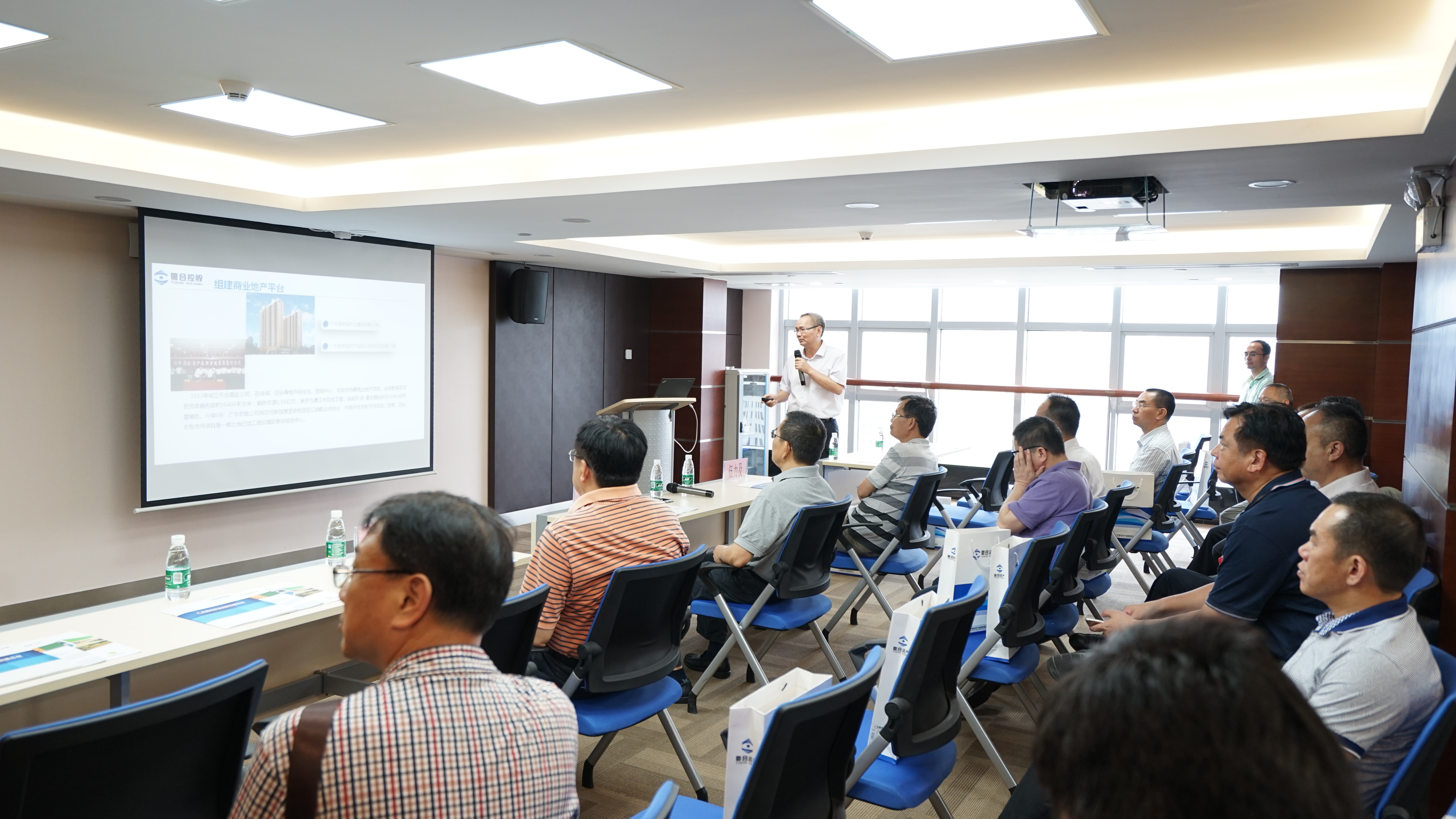 各位领导首先参观了办公楼15-17楼,然后到17楼会议室观看了粤合控股公司宣传片,并听取了康志滔董事长关于公司近年来改革发展及类金融业务情况的介绍。