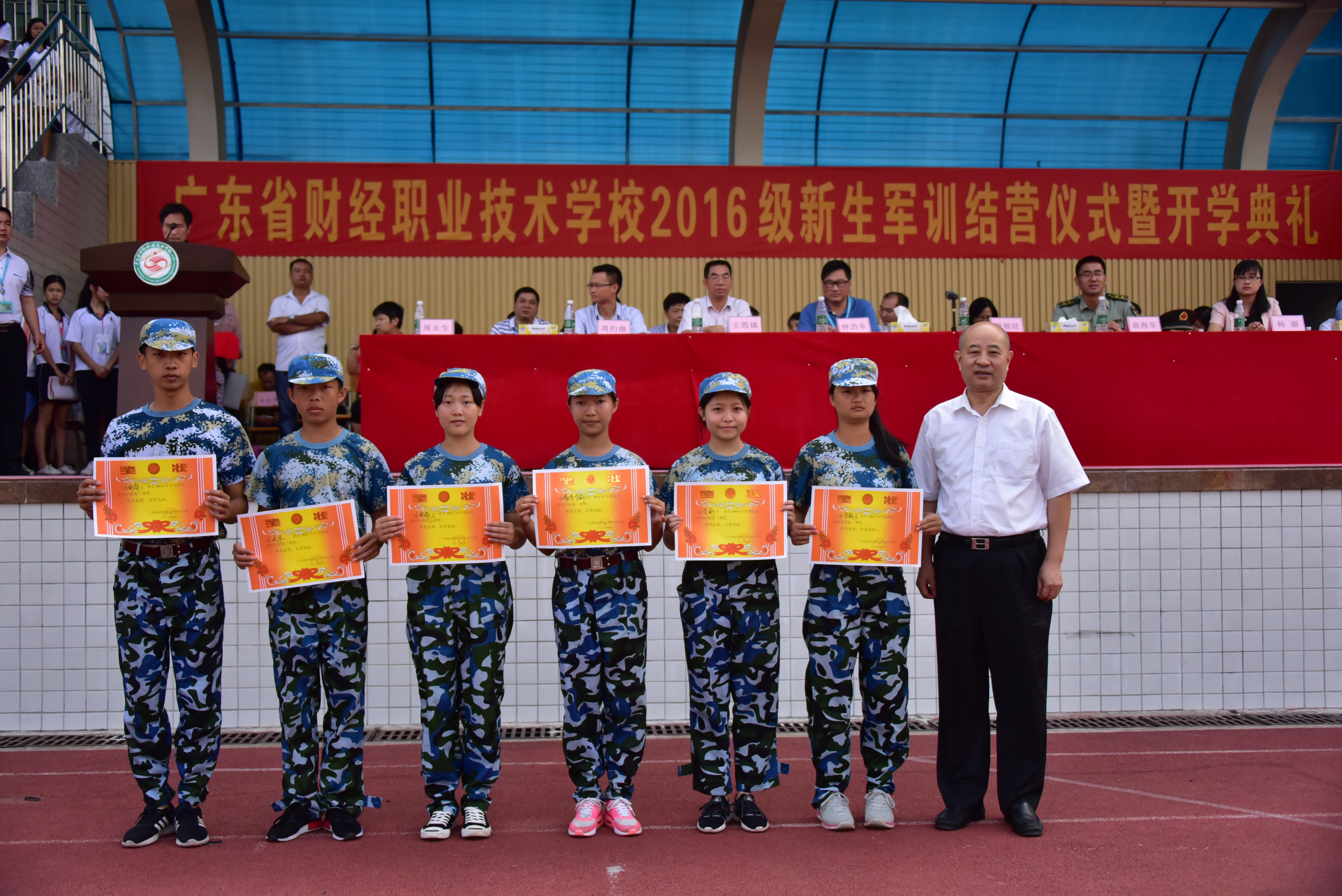 2016年9月22日上午,省财经学校在综合运动场隆重举行2016级秋季新生军训结营仪式。 党组成员、巡视员周根旺出席,学校党委书记、校长钟劲东,解放军76160部队高海军营长,沥南社区党委第一书记、省财经学校法制副校长蔡文辉,省供销社工会副主席王筠镇,广东新供销天润农产品有限公司副总经理周灼维,广东天禾农资股份有限公司人力资源部总经理杨丽等领导嘉宾在主席台就座。全校教职工参加了本次活动,还特邀请2016级新生家长代表前来观看。2015级全体同学在观礼台上观看了会操表演全过程。活动由周永生副校长主持。