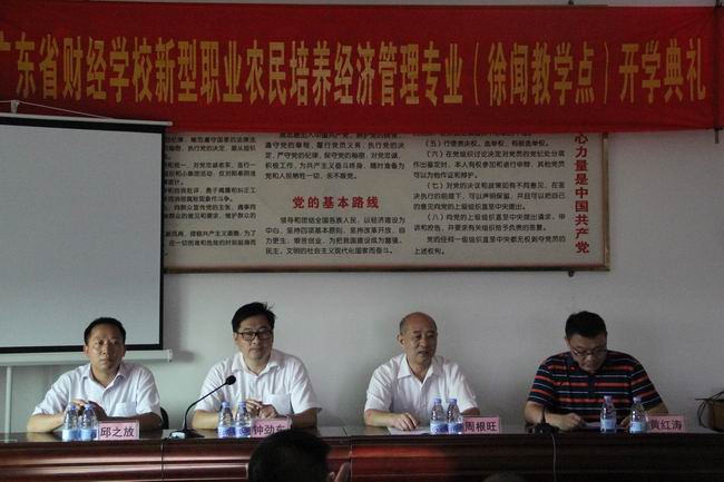 2016年10月7日,省财经学校在徐闻教学点举行2016级新型职业农民培养农村经济综合管理专业开学典礼。 党组成员、巡视员周根旺,广东省财经职业技术学校校长、党委书记钟劲东,省社人事教育处副处长黄红涛,徐闻和安镇镇长邱之放等领导出席了开学典礼。
