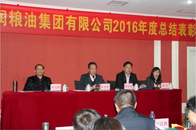 在总结表彰大会上,陈伟进董事长全面回顾了公司2016年的工作并部署了2017年的工作任务。陈董事长指出,2016年公司朝着明确的目标和工作思路奋斗,以坚持主营业务、打造重点项目、提升生产能力、优化区域建设、深化综合改革、承担储备任务等为工作重点,超额完成各项经营指标。2017年希望大家主动适应新常态,展现新作为,认真贯彻落实公司各项工作部署,勇于担当,继续前进,以打造“放心粮油在天润”为目标,撸起袖子加油干。