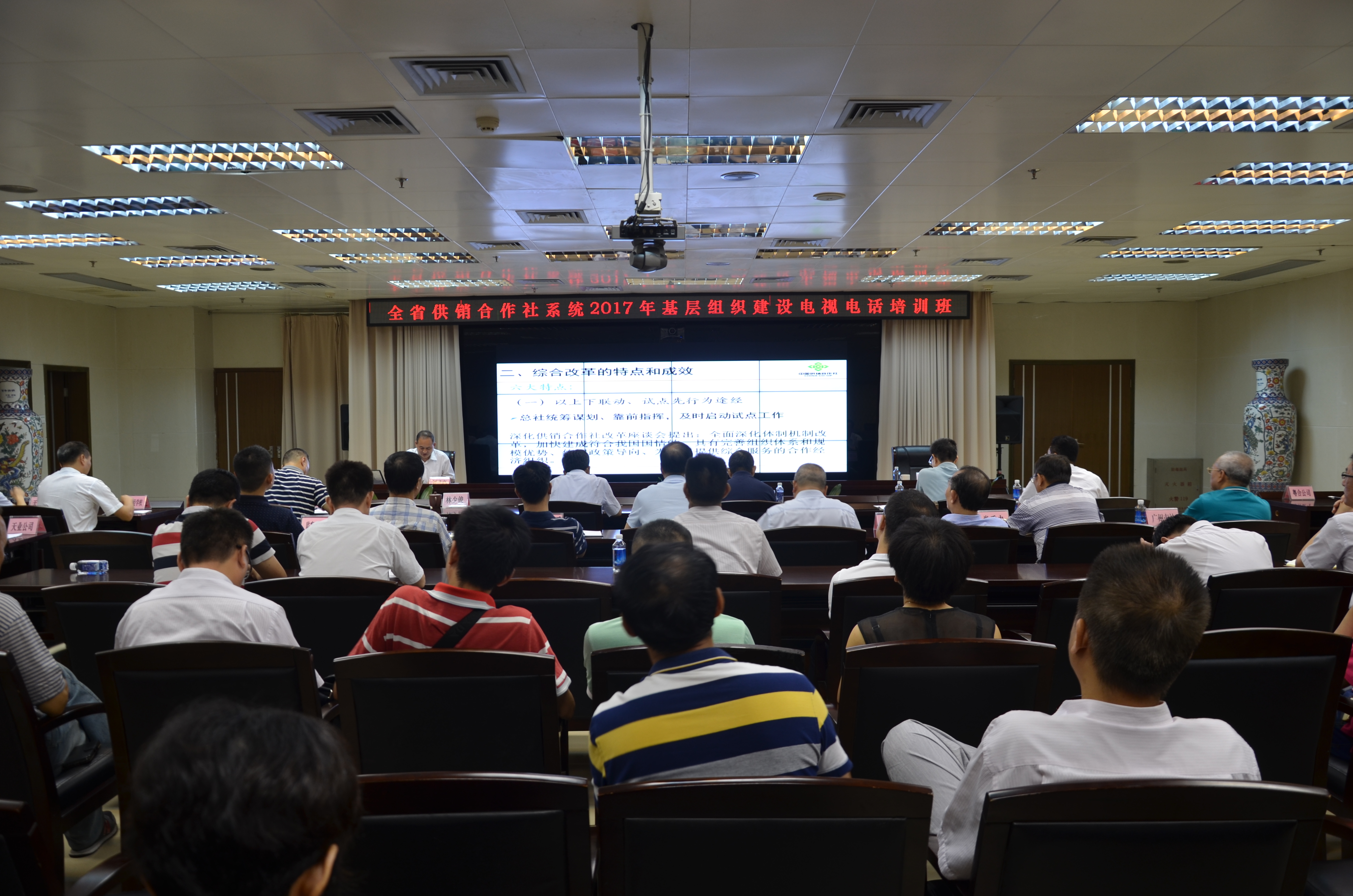 8月15日,省社举办全省供销合作社系统2017年基层组织建设电视电话培训班。培训班邀请了总社合作指导部刘进喜部长为我省供销社系统省、市、县社以及基层社的干部授课,通过解读加强供销社基层组建设有关文件精神、分析基层组织建设有效途径和介绍典型经验。在省社主会场参加培训有省社机关全体干部,各直属单位负责人;在20个地级市分会场参加培训的有地级以上市供销社领导班子成员、业务科室相关人员,县(市、区)供销社领导班子成员以及基层社主任。这次培训班是今年省社组织的最大规模的培训班,参加人数1000人。
