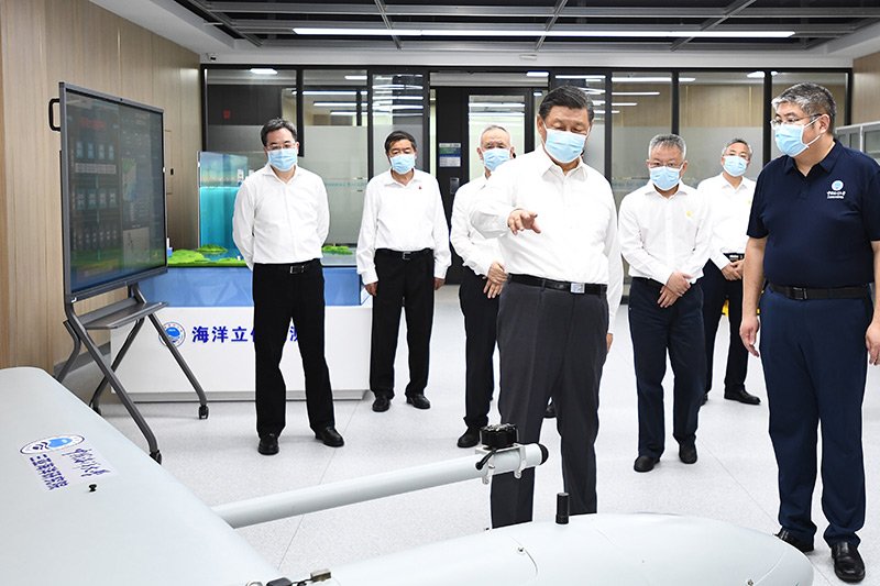 4月10日至13日,中共中央总书记、国家主席、中央军委主席习近平在海南考察。这是10日下午,习近平在中国海洋大学三亚海洋研究院考察。新华社记者 燕雁 摄