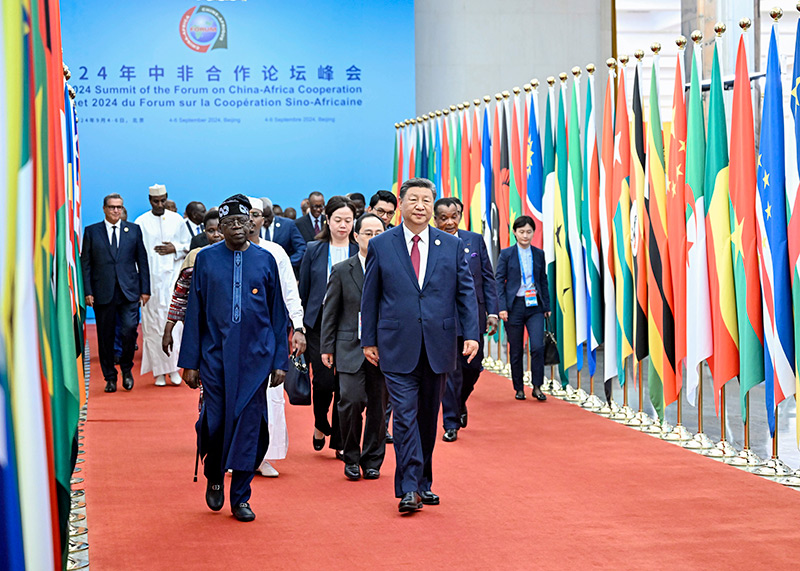 初秋北京,高远澄明。天安门广场和长安街两侧,鲜艳的五星红旗同53个非洲国家和非洲联盟旗帜迎风飘扬。