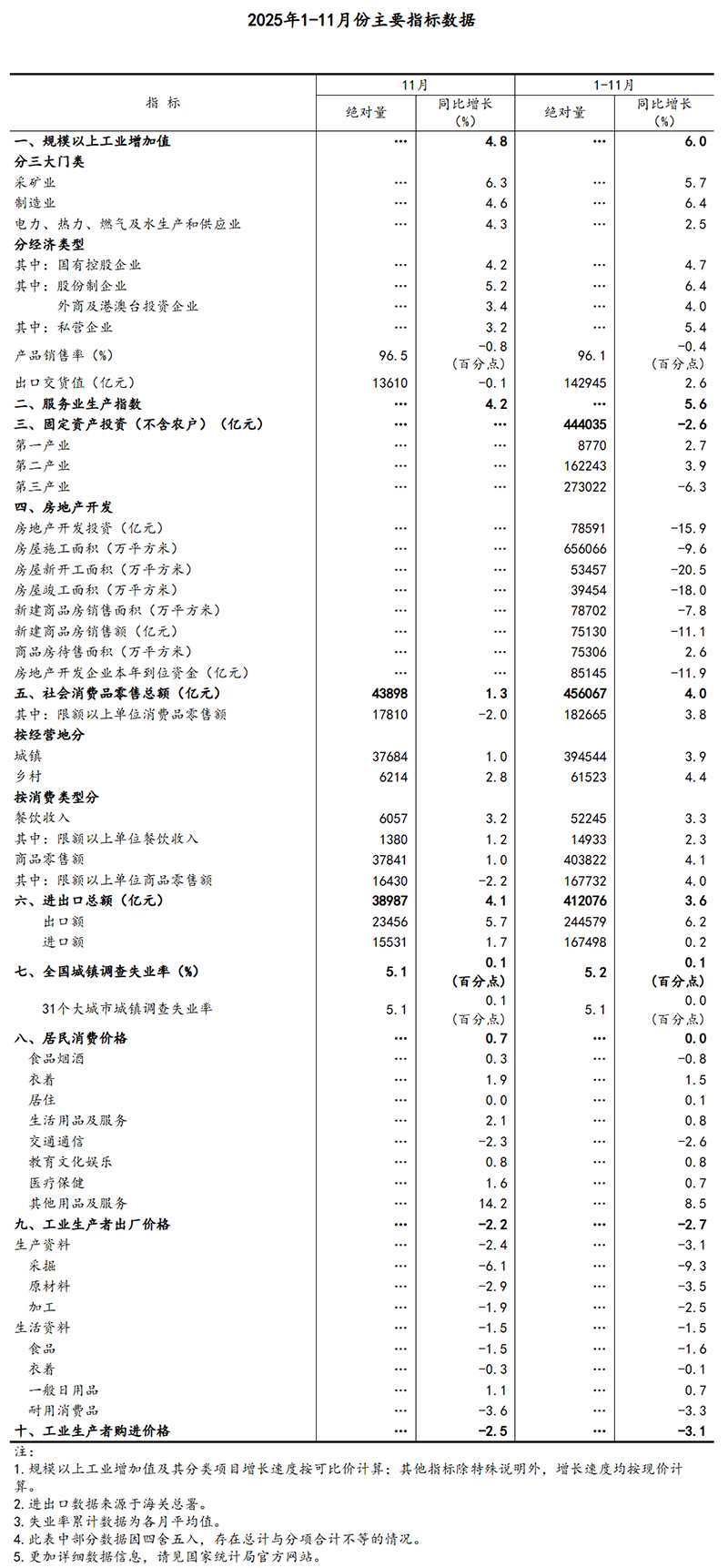 (1)规模以上工业增加值及其分类项目增长速度按可比价计算,为实际增长速度;其他指标除特殊说明外,均按现价计算,为名义增长速度。