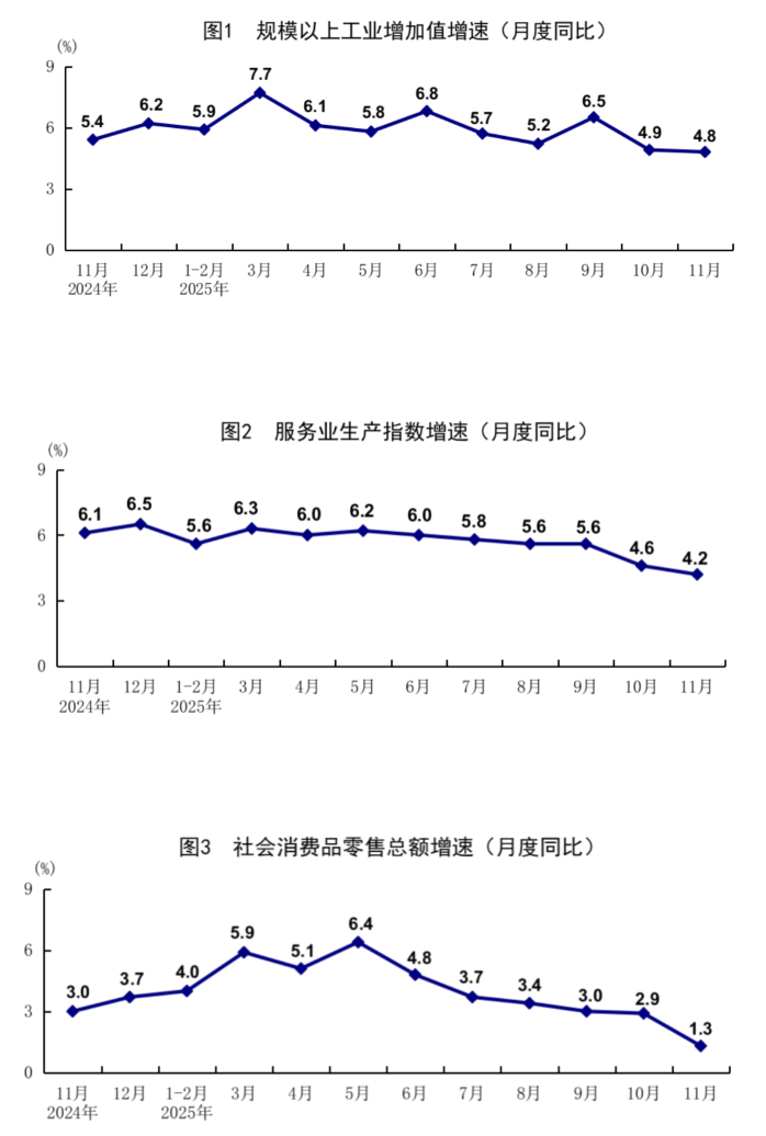 根据第五次全国经济普查结果对社会消费品零售总额、网上零售额数据进行了修订,2025年社会消费品零售总额、网上零售额相关指标月度增速按照可比口径计算。