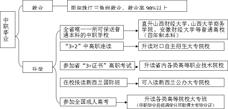 前三年在校本部,后两年在相关高职院就读,获“中职+大专”文凭 | ||