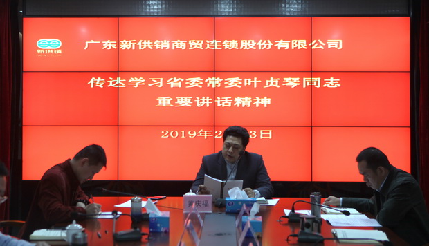 2019年2月13日,新供销商贸公司党总支在总部组织召开传达学习省委常委叶贞琴同志到省社调研时发表的重要讲话精神暨新春工作动员会。新供销商贸公司经营班子成员、监事会主席、总经理助理和各部门、子(分)公司主要负责人参加了会议。