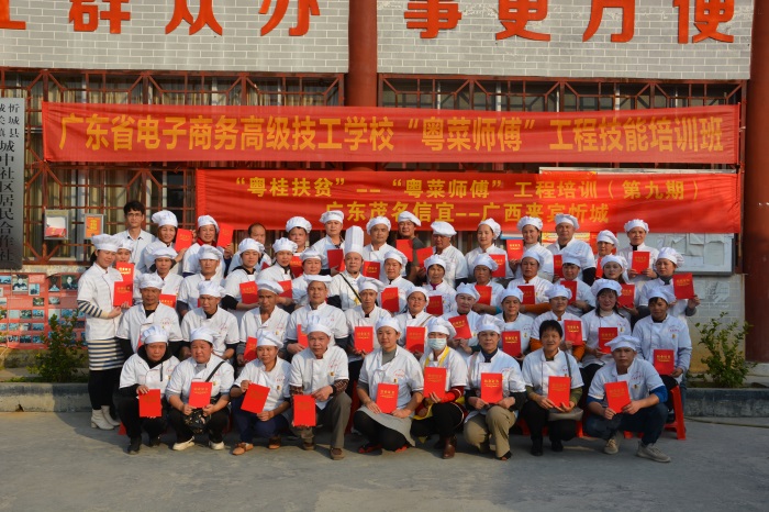 省电子商务高级技工学校深入贯彻落实“粤菜师傅”工程工作,充分利用学校教学资源优势,通过举办烹饪专业教育、为在校贫困学生开展免费“粤菜师傅”技能培训,以及依托基层供销社送教下乡,为贫困农户开展“粤菜师傅”培训班等形式,促进了城乡劳动者就业创业,积极助推乡村振兴战略。此次在广西壮族自治区来宾市忻城县开办“粤菜师傅”工程技能培训班,是省电子商务高级技工学校联合广西壮族自治区来宾市忻城县供销社和信宜市供销社,拓宽“粤菜师傅”工程培训服务领域,创新“粤菜师傅”服务工作形式的有益尝试,省电子商务高级技工学校今后还将在“粤菜师傅”工程技能培训领域进一步深耕细作,不断深化贯彻落实“粤菜师傅”工程的效能。