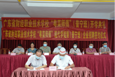 同时,开班现场还进行了现代学徒制企业招聘签约仪式。职业教育现代学徒制,招生即招工,学生具有双重身份(既是企业的员工,又是学校的学生),校企一体化育人。省财经职业技术学校与企业将按照人才培养方案,做好“粤菜师傅”专业技能人才的培养工作,促进城乡劳动者技能就业,助推乡村振兴发展。
