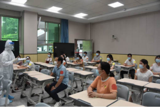 演练模拟情景:以某日学校收到疾控机构通报,2020级某班某学生到南海区第五人民医院(大沥医院)发热门诊就诊核酸检测结果阳性为背景开展演练。从校医收到医院通知,到学校宣布启动应急预案,同时分别向省供销社、省教育厅上级部门报告,再到封控校园、流调、筛查、核酸检测、转移、隔离、全面消杀、后续处置等环节,环环相扣,一丝不苟,认真操作。