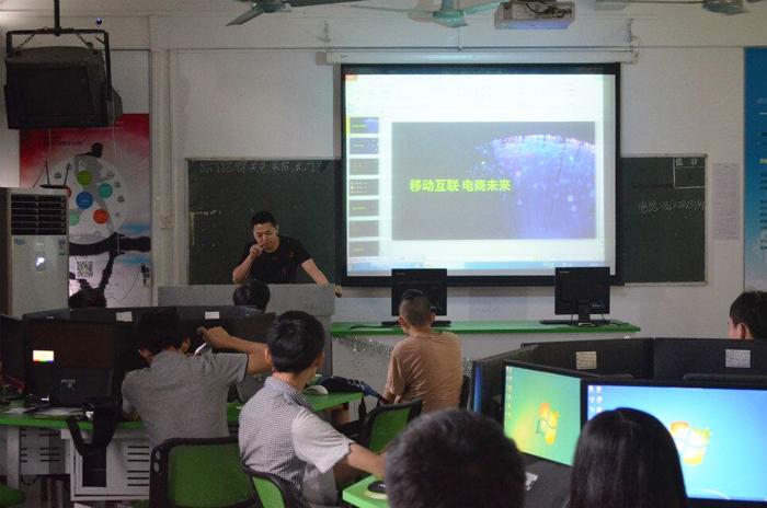 5月17日,为促进飞天企业班的深度学习,加深学生对电商的了解,省电子商务技师学院联合飞天企业,特邀广州素履电子商务有限公司CEO杜涛先生进校为电商高156班讲课。杜总以《移动互联、电商未来,传统电商运营转型之路》为主题做课程讲座。杜总以自身经历结合电子商务现状进行演讲,全程幽默诙谐,与班级成员打成一片。