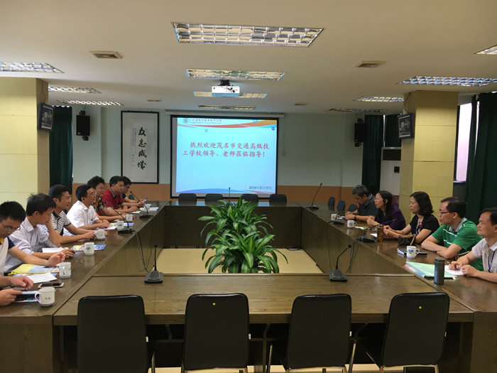 5月17日上午,茂名市交通高级技工学校刘坤林、邱雄杰副校长一行8人到省电子商务技师学院进行参观交流。学院彭仲文、施志君副院长、吴瑞明院长助理等领导、老师在大会议室接待来访客人。