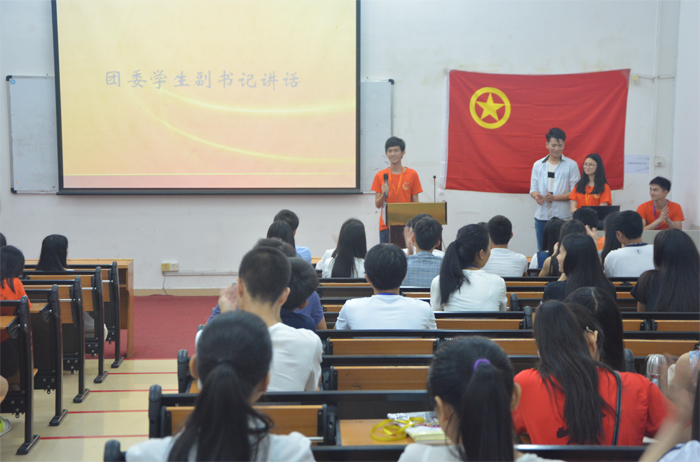 在主持人幽默的开场白中会议拉开帷幕,激扬壮志的团歌之后,屏幕上播放了团委成员自己动手制作的vcr,记录下每次活动的最美身影。院团委副书记杨健东同学、院团委各部门干部、各系团总支在会上分别分享了自己的工作心得。随后团员代表发表讲话,广东省南方技师学院代表、广东省城市建设技师学院代表分享工作经验。在分享活动结束后,院团委书记郭宾对院团委的各项学习、生活与工作情况进行回顾,表达了希望新一届院团委能够比往届更密切联系在一起的愿望。