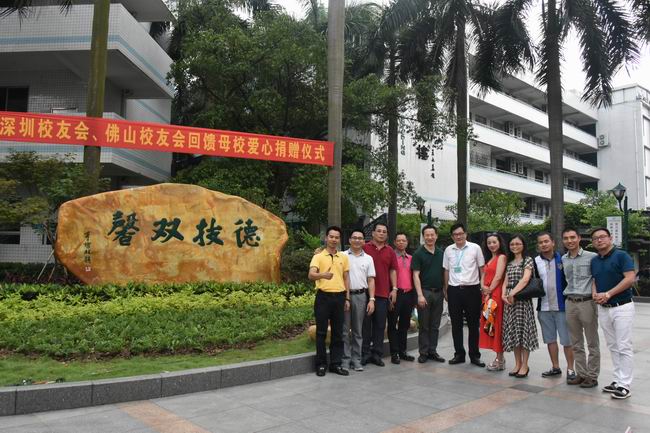 今年四月份,深圳校友会、佛山校友会分别捐赠了母校校训石一块、香樟树一棵,作为校友心系母校的文化载体,承载校友对母校的感恩和纪念。钟校长在致辞中主要表达了三层意思:感谢、践行、祝愿。
