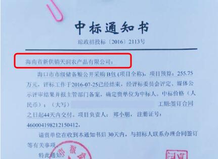 2016年,海南省新供销天润农产品有限公司积极参与采购项目公开招投标,成为多家大型企业单位的粮油供应商,屡创佳绩。此次储备粮业务中标,印证了海南天润公司的品牌影响力日益增强,公司产品质量及管理体系得到越来越多机关事业单位的认可。