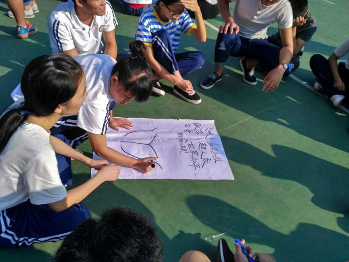 本次活动内容丰富,以小组竞争的形式进行。选队长、喊口号、画队徽、做海报……现场气氛热烈,各队都展开了激烈的讨论,都希望能尽展自己团队的风采。随后的七个活动项目分别为齐眉棍、人椅、你是我的眼、无敌风火轮、七彩连环炮、信任背摔、报数速度,考验了各队队员的个人意志、能力和勇气,也考验了团队的配合和队员们的相互信任。