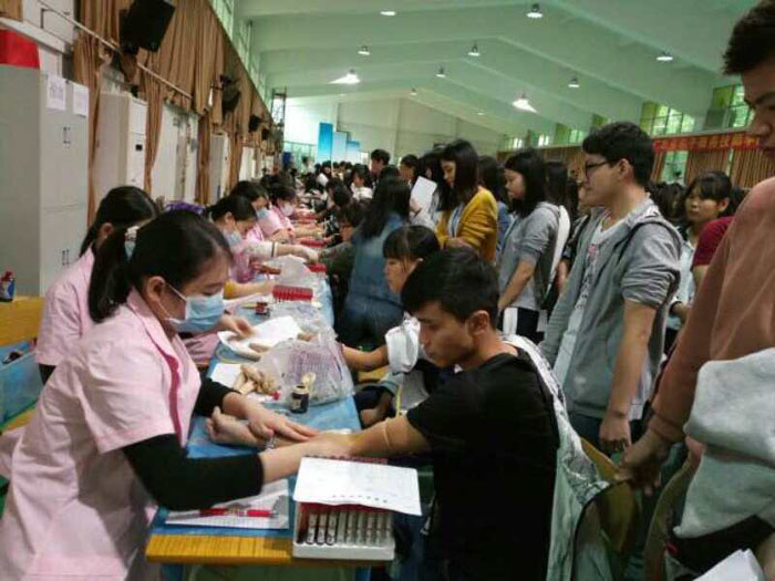 为防止发生意外,各部门工作人员到现场监督,维持秩序,校内车辆停放位置也实施了规范管理。现场配备了饮水机供晕血的同学饮用,还配备了瓶装水。体检前也给每个班级发放了体检注意事项,提醒学生在抽血前避免做剧烈运动,体检当日带上证件等。