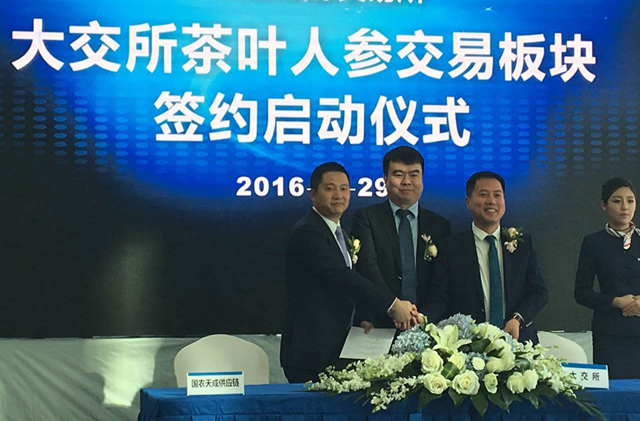 2016年11月29日,广东国农天成供应链有限公司与大连再生资源交易所、深圳国农发展有限公司在大连市高新园区南海一号举行大交所茶叶人参交易板块的签约启动会。国农天成公司董事长林彤、董事施轶俊、董事兼总经理林晓晖,大连再生资源交易所董事长孔德春、总经理助理孙骁,深圳国农发展有限公司董事长于培同出席会议;第一财经、搜狐财经、腾讯财经、大连电视台财经频道等新闻媒体参加。