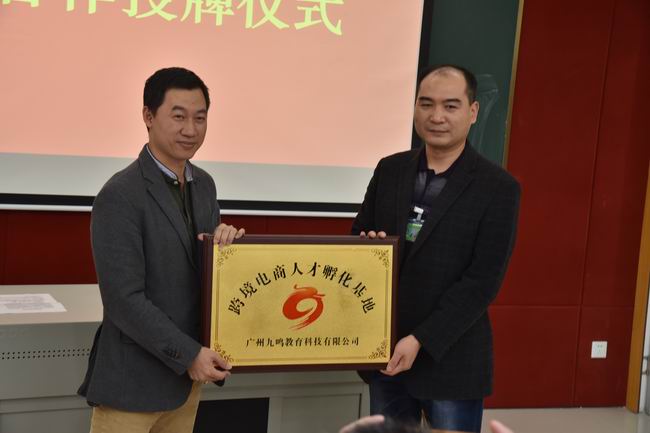 2016年12月7日下午,省财经学校举行商贸管理系校企合作授牌仪式暨跨境电商综合实训动员大会。省财经学校李广乾副校长、广州九鸣教育科技有限公司林俊锋董事长出席仪式并作讲话,九鸣公司院校合作部洪斌经理、商贸管理系苏利群副主任、商贸管理系谢冬梅副主任、商务组组长付茜老师、九鸣企业讲师苏佳铜、黎英琪以及15商务英语2班全体学生参加了本次会议。