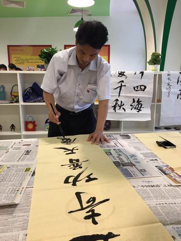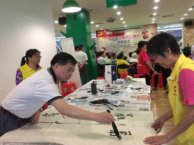 在仪式上,刘茂芳主任和邱启添老师还应邀为市民现场即兴挥毫,赢得市民的啧啧称赞。