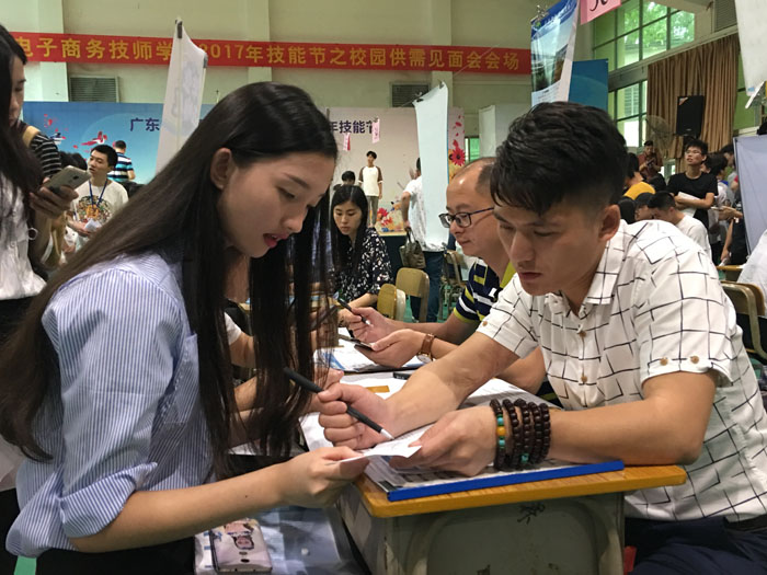 5月24日,省电子商务技师学院隆重举行2017年校园供需见面会,包括格力电器、美的集团、蓝盾信息安全技术股份公司等名企在内的150多家用人单位拿出4500余岗位,向省电子商务技师学院今年参加顶岗实习的学生抛出橄榄枝。而该院今年参加实习的学生只有1400人,供需比达3:1,就业形势火爆。广东电视台、南方日报、南方都市报、羊城晚报等多家媒体到校采访。