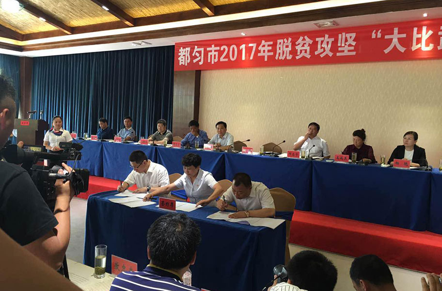 6月8日,在都匀市2017年脱贫攻坚“大比武”推进会上,天成投资公司与都匀市人民政府、贵州都匀毛尖茶产业发展有限公司签署了《战略投资协议》,共同推进都匀市产业扶贫项目。