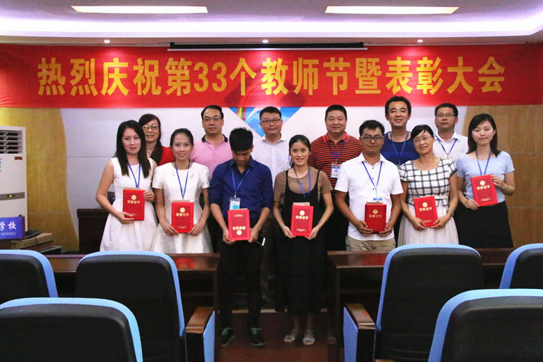 校长助理、学生科科长何国雄在会上宣读《关于表彰2016-2017学年年“优秀教师”“优秀班主任”的决定》,授予谢茂进、余嘉静、黄宇媚、吴心艺、张宜琼、卓少鹏等6位老师为2016-2017学年“优秀教师”荣誉称号;授予梁礼中、黄小玉、廖蕴阳、黄子城等4位老师为2016-2017学年“优秀班主任”荣誉称号。李明龙校长和黄红涛副处长分别为获奖老师颁发荣誉证书和奖金。