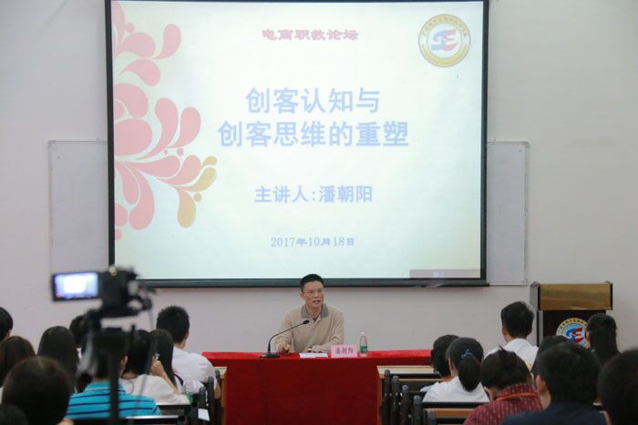 10月19日下午,省电子商务高级技工学校校长、党委书记潘朝阳在学校多媒体一室再次开讲一堂精彩的电商职教论坛专题讲座,机械电子系、电子商务系全体教师,经济管理系和计算机系系主任及教研组组长,一里营运营组全体师生到场聆听。本次论坛主题为“创客认知与创客思维的重塑”。