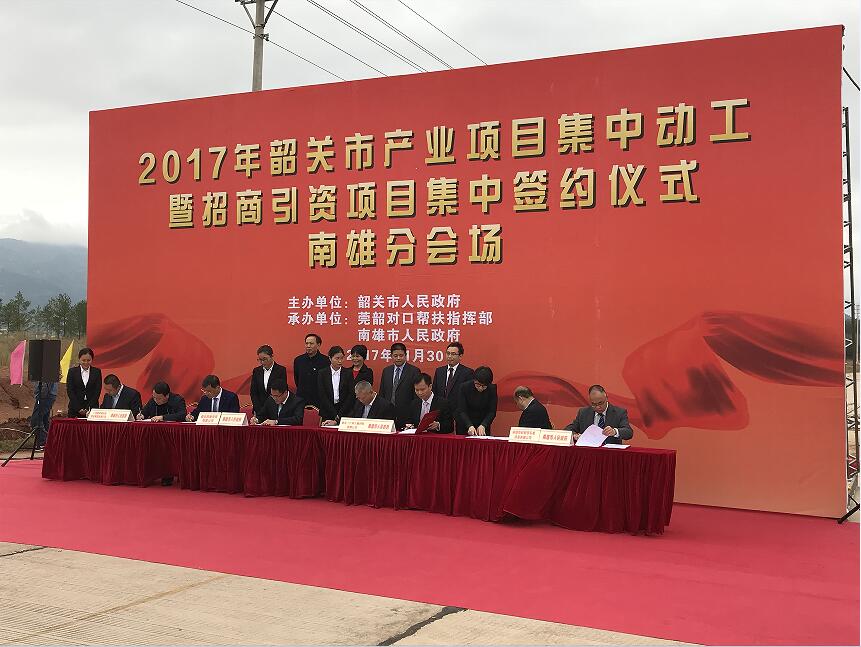 日,韶关市产业项目集中动土暨招商引资集中签约仪式隆重举行,南雄市委书记王碧安,市委副书记、市长林小龙等出席签约仪式,天润公司副总经理杨锐华代表公司进行签约。