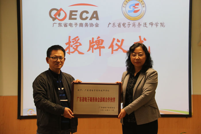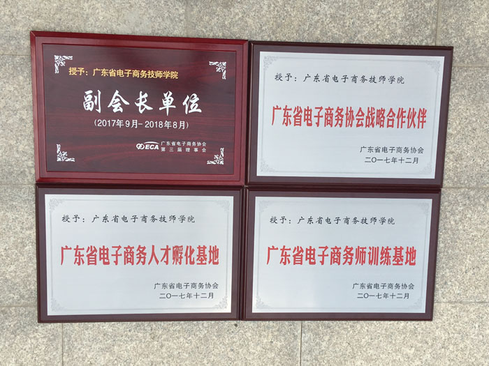 会上,广东省电子商务协会授予省电子商务高级技工学校“广东省电子商务协会副会长单位”、“广东省电子商务协会战略合作伙伴”、“广东省电子商务师训练基地”、“广东省电子商务人才孵化基地”牌匾。