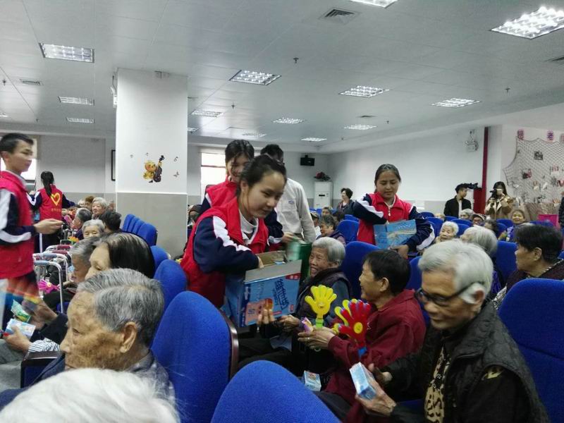 最后,老师带领同学们为长者们献上学校精心准备的慰问品,并由同学们协助社工把长者们送回房间休息。
