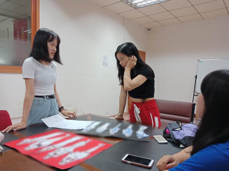 2018年4月13日,三位学生带着画稿前往海伦服装公司参观学习,并得到设计总监的当面指导。在接下来的毕业设计中,准备按公司设计要求绘制电脑款式图、制作成品,以提供给客户挑选,成为公司产品。