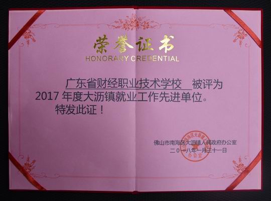 4月24日,大沥镇就业工作先进单位和先进个人表彰会议在大沥镇政府召开,省财经学校荣获“2017年度大沥镇就业工作先进单位”称号。