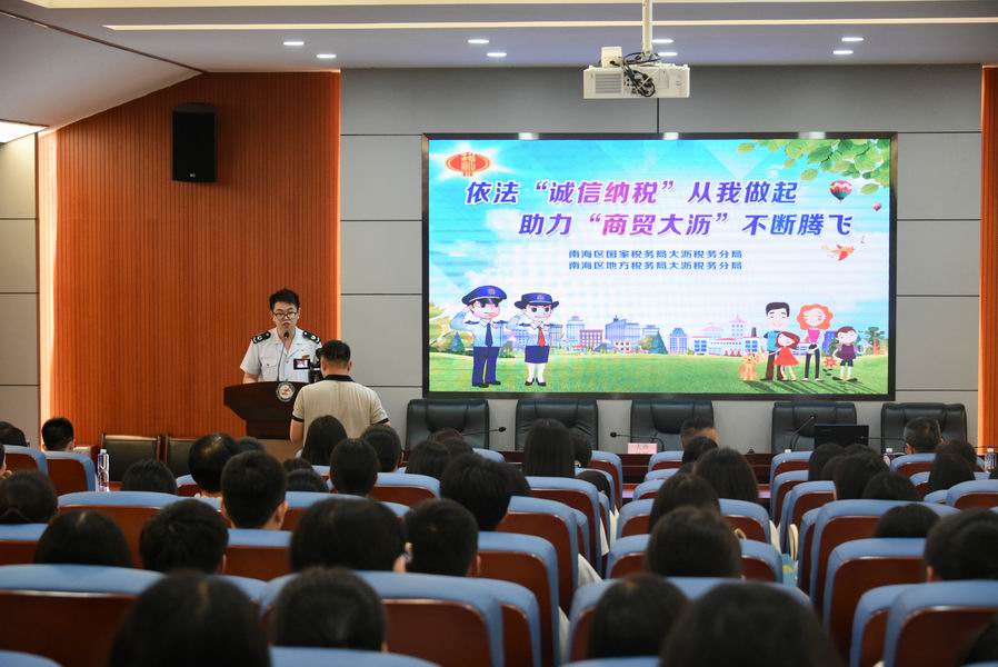 本次税收专题讲座是我校财会金融系和税务局开展的校企合作活动,是为会计专业学生组织的岗前培训,旨在增强会计学生的税收意识,加深学生对税收知识的掌握。本次讲座同时作为南海区大沥国地税的税收宣传活动,从源头加大对税收人员的宣传力度,营造良好有序的商业环境。