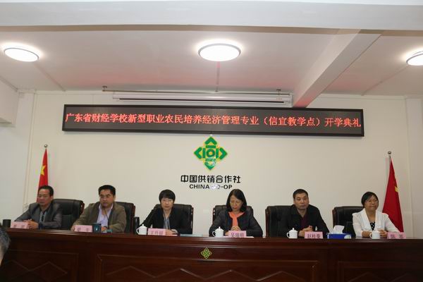 2018年12月7日,省财经学校在信宜市举行新型职业农民培养班信宜教学点开学典礼。信宜市供销合作联社副主任梁生、省财经学校副校长吴瑞明、信宜市供销合作联社综合业务股股长萧明、信宜市岭南商贸有限公司经理刘毅、省财经学校教务科科长王丹丽、招生就业办主任赵桂豪、财会金融系副主任陈英出席了开学典礼。